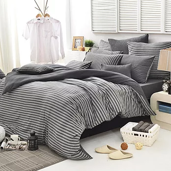 義大利La Belle《斯卡線曲》雙人四件式色坊針織被套床包組-鐵灰